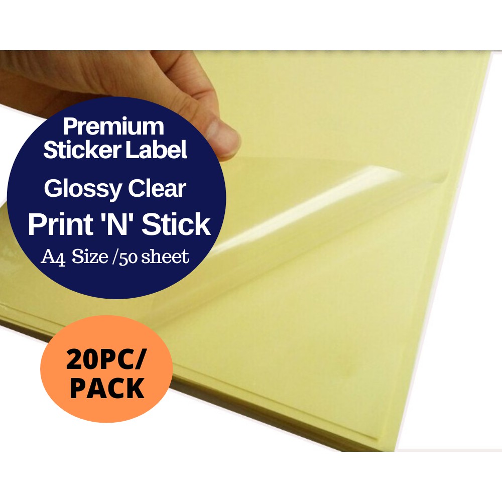 20 Sheet A4 Clear Premium Printable Vinyl Sticker Paper Self-adhesive Sheets, 8.3 X 11.7 Inch