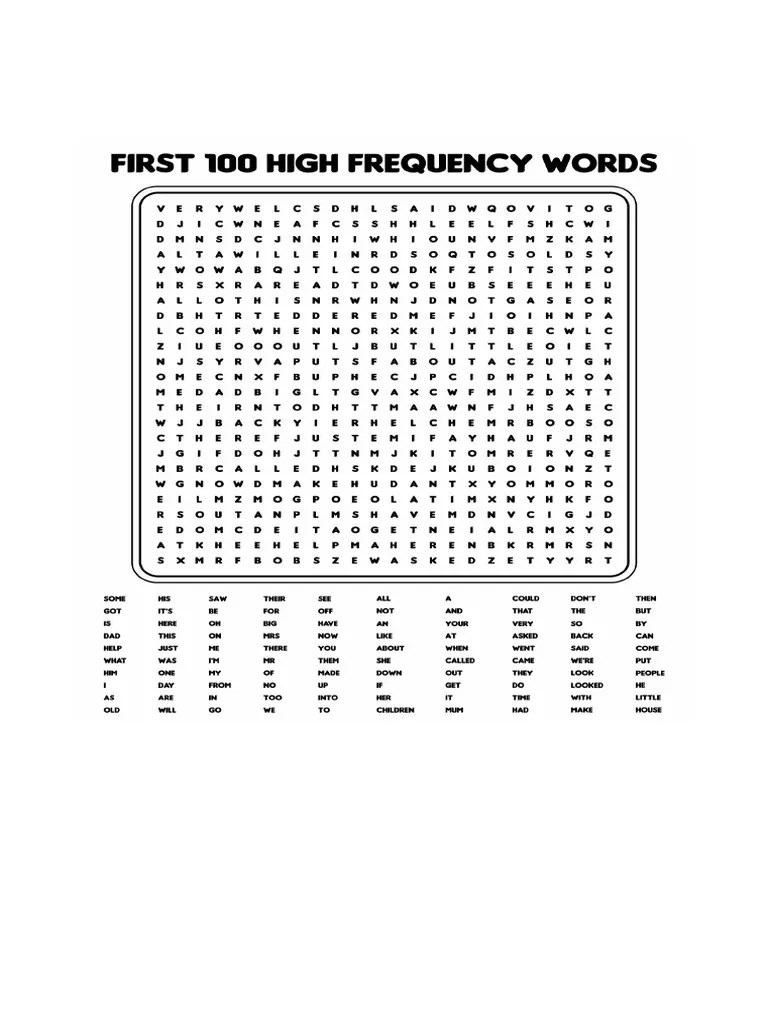 100 Word Word Searches Printable
